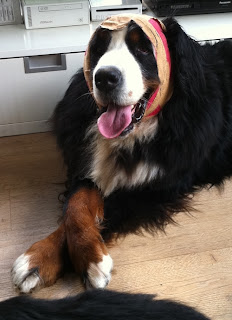 Ik werd gevraagd of ik een soort van bandana voor om de nek van een Berner wilde maken voor een bruiloft. Het was een meisje. Ik zei toen: nee joh, dan ga je toch geen bandana omdoen!